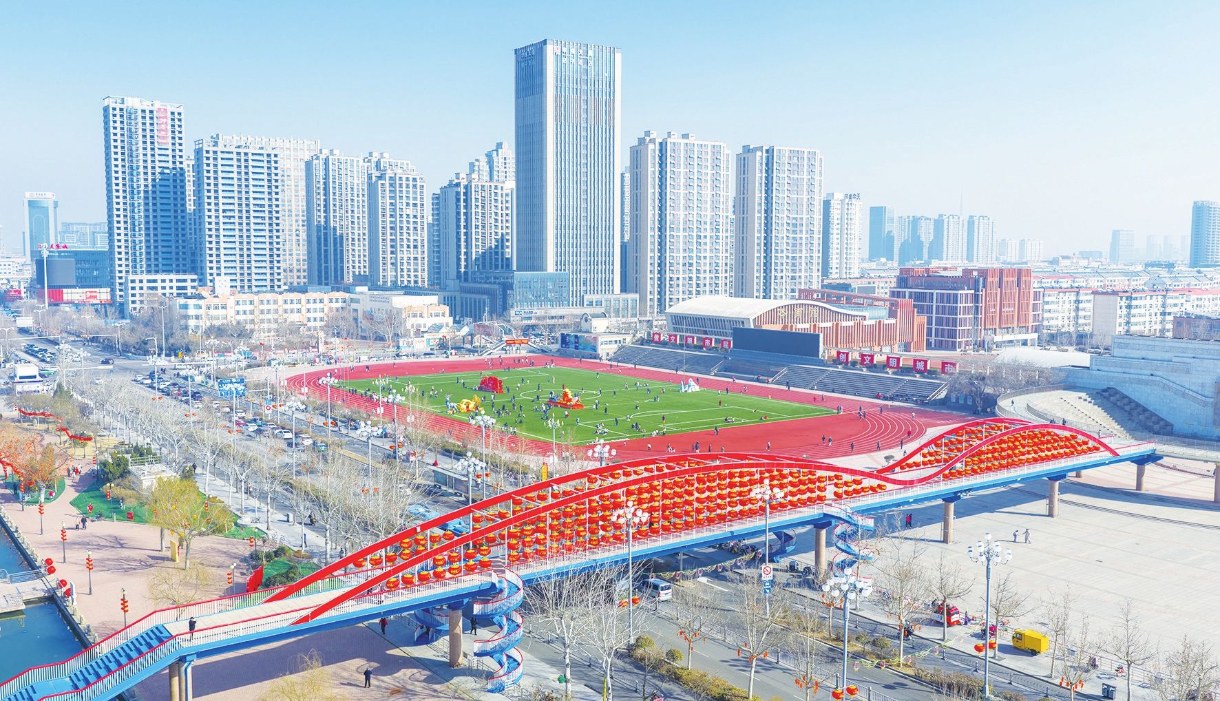 2月11日,市中心廣場天橋上掛滿了紅燈籠,不少市民駐足拍照,定格新春的溫暖瞬間。隨著春節臨近,我市大街小巷、公園廣場張燈結彩,喜迎新春佳節。新湖景區、長河公園、月湖公園等場所精心策劃,紅燈籠和藝術裝置相映成趣,為城市營造了濃濃的節日氛圍。
