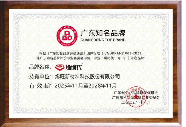 在廣東品牌發展大會 上,第11批“廣東知名品牌”名單 正式揭曉并舉行頒證儀式。作為本次入選的石墨烯領域品牌,烯旺集團旗下“烯時代” 的亮相,標志著石墨烯這一前沿材料,正式以“品牌化”身份躋身廣東新材料制造與科技創新品牌陣營。
