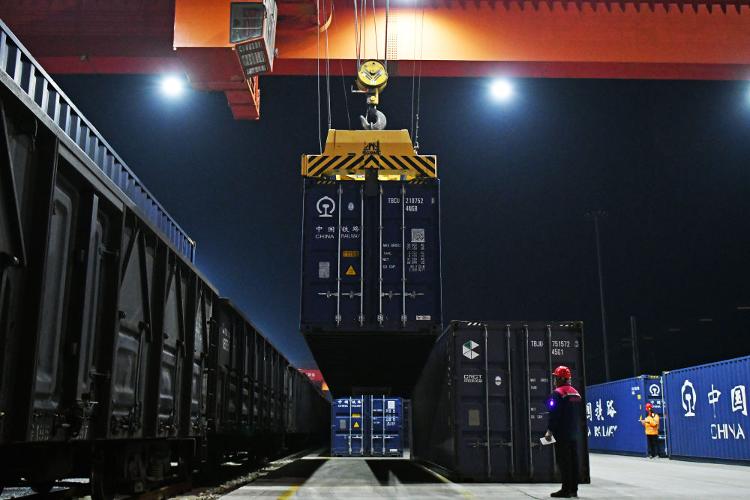 4月11日,煙臺(tái)至廣州鐵路集裝箱班列開行滿一周年,發(fā)送化工、食品、機(jī)械設(shè)備等貨物超21萬噸。貨物抵達(dá)廣州后將分撥至港澳,為“山東制造”更好地融入粵港澳大灣區(qū)注入了強(qiáng)勁動(dòng)能。新華社發(fā)(孫文潭 攝)