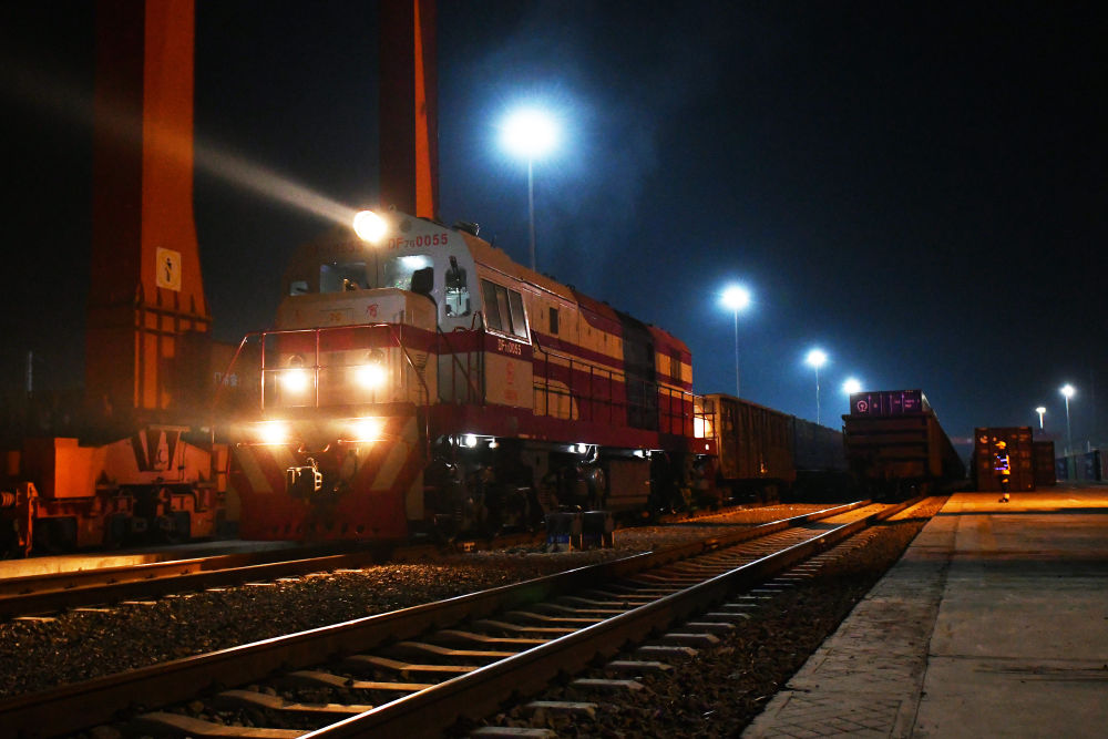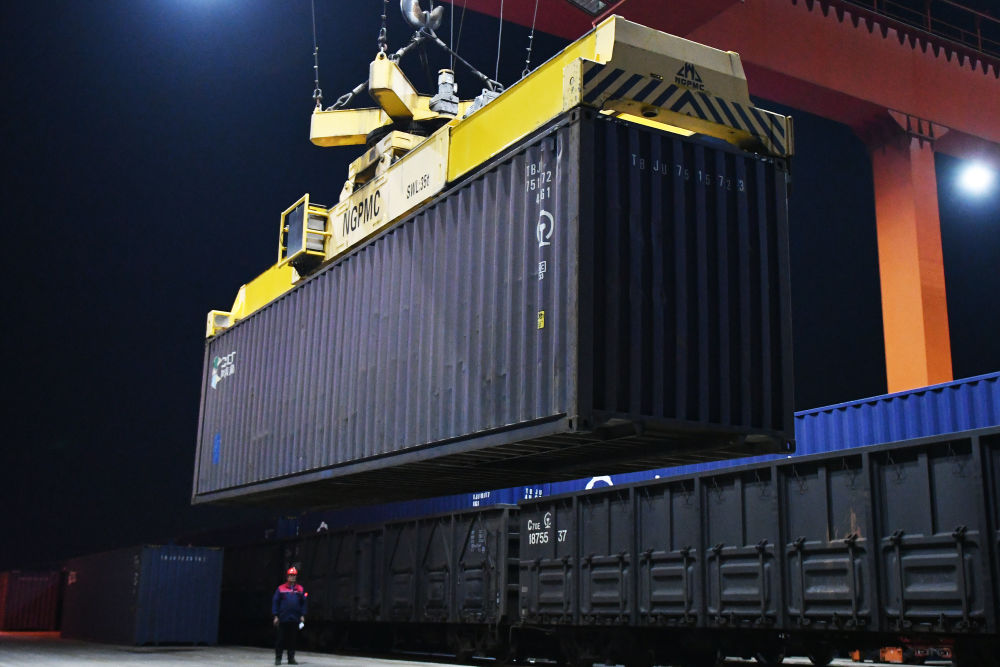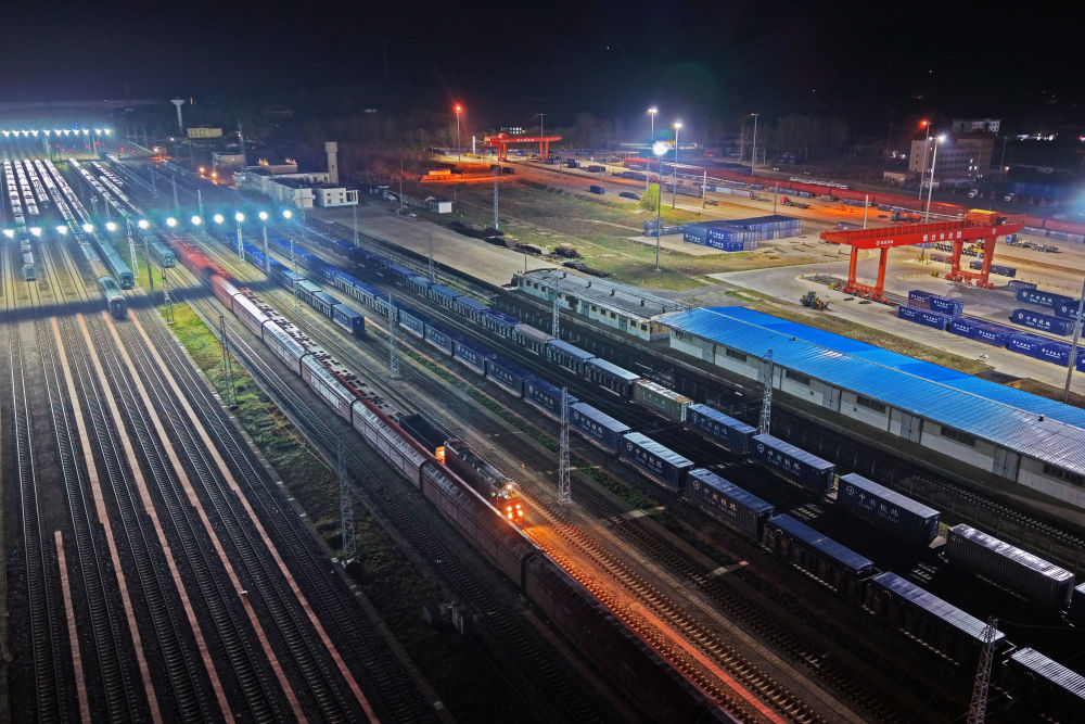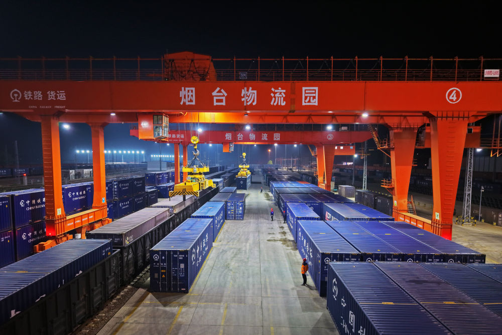 4月11日,煙臺至廣州鐵路集裝箱班列開行滿一周年,發(fā)送化工、食品、機(jī)械設(shè)備等貨物超21萬噸。貨物抵達(dá)廣州后將分撥至港澳,為“山東制造”更好地融入粵港澳大灣區(qū)注入了強(qiáng)勁動能。新華社發(fā)(孫文潭 攝)