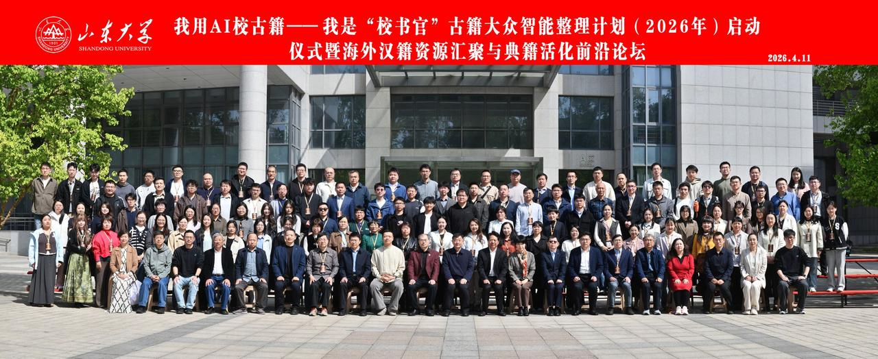 4月11日,“我用AI校古籍”2026年啟動儀式暨“海外漢籍資源匯聚與典籍活化前沿論壇”在山東大學中心校區舉行。活動由全國高等院校古籍整理研究工作委員會(簡稱“古委會”)主辦,山東大學國際漢學研究中心、山東大學古典文獻研究所、字節跳動公益聯合承辦。教育部語言文字應用管理司、全國高等院校古籍整理研究工作委員會、山東大學及字節跳動公益相關負責人,專家學者、志愿者代表、抖音創作者等160位嘉賓出席活動。