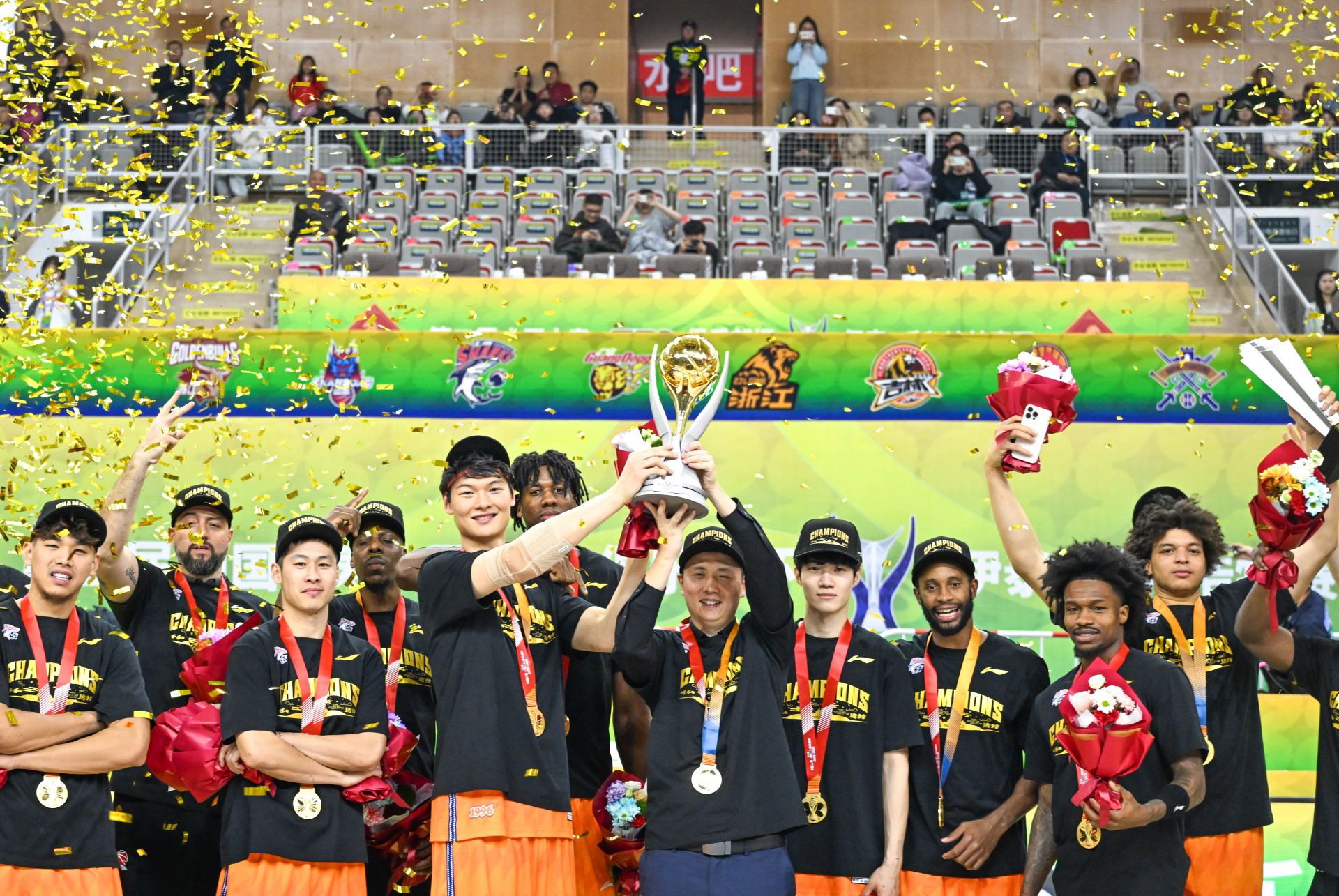 2月12日,冠軍上海久事隊在頒獎儀式上慶祝。
