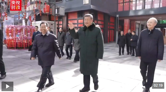 2月10日上午,在北京考察調研的習近平總書記來到隆福寺街區,了解當地豐富節日市場供應、打造城市特色活力片區等情況,看望慰問基層干部群眾。這一天恰逢農歷小年,隆福大廈前,新春市集吸引了大量市民和游客。習近平饒有興致察看各式年貨攤位,同現場群眾親切交流。