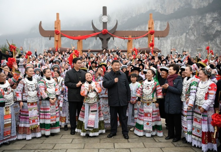 離開三河村,習近平總書記又去了解放鄉(xiāng)火普村。考察結束之際,男女老幼身著民族盛裝,排起長長的隊伍,紛紛向總書記問好,向總書記拜年。村黨支部書記代表村民獻上彝族傳統(tǒng)服飾查爾瓦。習近平總書記身披查爾瓦,同鄉(xiāng)親們握手話別。